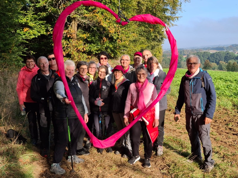 Randonnée de 9,5 km à travers le bocage de Fougerolles, vallons encaissés. Familles rurales a remis un chèque de 75 euros à l association octobre rose.
