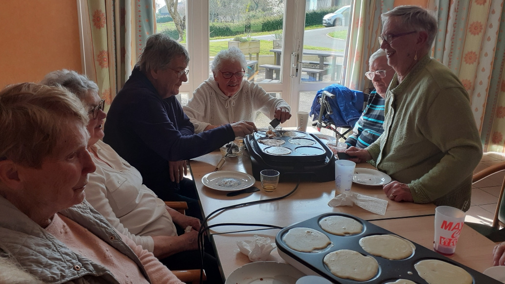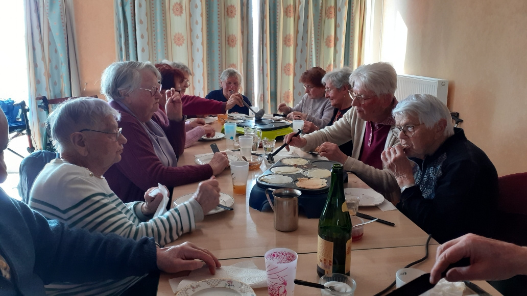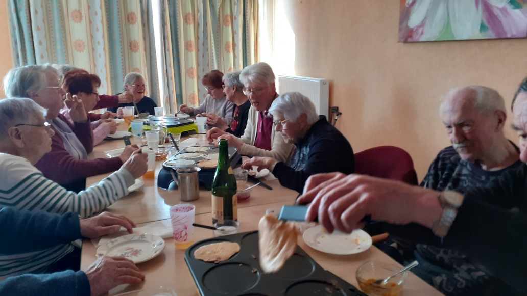 Mardi 24 mars, 30 bénéficiaires de l ADMR, dont 13 résidents de la MARPA, se sont réunis à la MARPA autour d'une crêpes party.