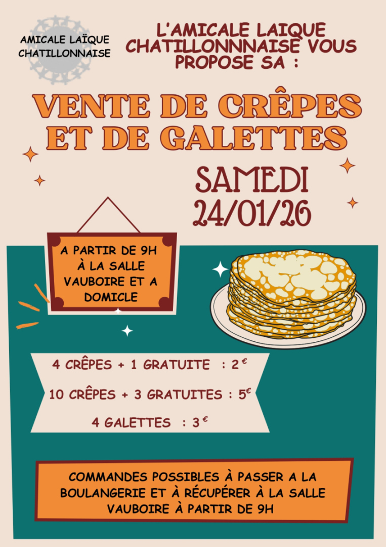 Vente de crêpes et de galettes de l’Amicale Laïque Châtillonnaise.